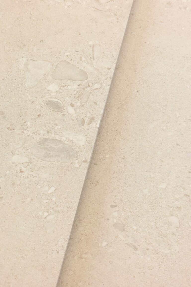 Kolekcia GemmaStone je klenot inšpirovaný mušľou (Shellstone) – materiálom, ktorý vznikal pod morskou hladinou celé tisícročia. V jeho štruktúre sa mieša príbeh vody, času a minerálov. Na povrchu týchto dlaždíc sa objavujú drobné mramorové zrniečka, akoby drahokamy vystupujúce z materiálu s jemnou eleganciou a prirodzenou rovnováhou. Nič nie je prehnané – všetko je dokonale vyvážené.