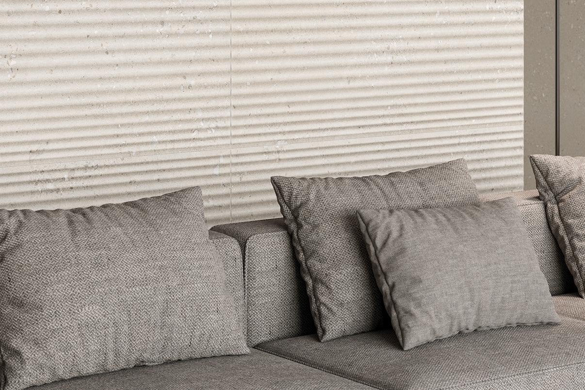 Zaujímavým doplnkom je dekor Onde, dostupný vo variante Fine – jeho jemne vlnitý motív plynule prechádza celým povrchom a vytvára dojem pohybu, akoby dlažba dýchala s priestorom. V kombinácii s mozaikami či povrchom Lappato Antique sa tak GemmaStone stáva materiálom, ktorý nielen krásne vyzerá, ale aj rozpráva príbeh o čase, vode a kameni.