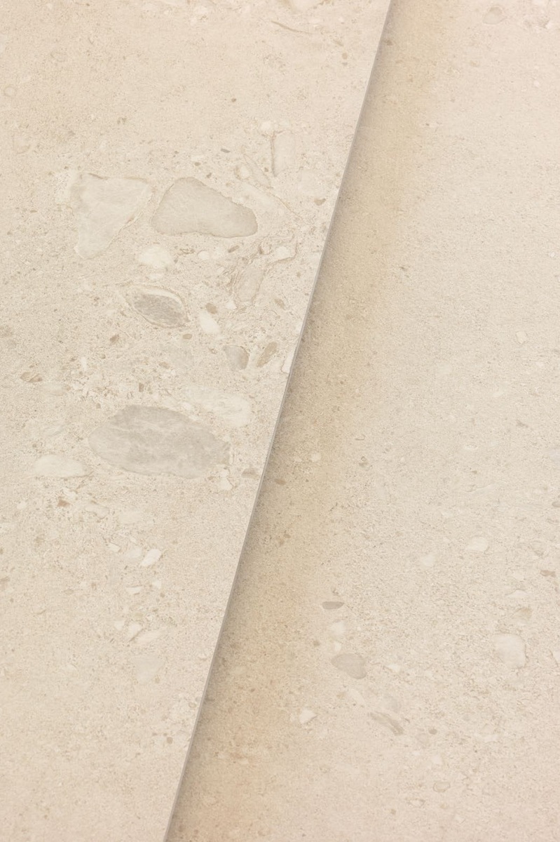 Kolekcia GemmaStone je klenot inšpirovaný mušľou (Shellstone) – materiálom, ktorý vznikal pod morskou hladinou celé tisícročia. V jeho štruktúre sa mieša príbeh vody, času a minerálov. Na povrchu týchto dlaždíc sa objavujú drobné mramorové zrniečka, akoby drahokamy vystupujúce z materiálu s jemnou eleganciou a prirodzenou rovnováhou. Nič nie je prehnané – všetko je dokonale vyvážené.