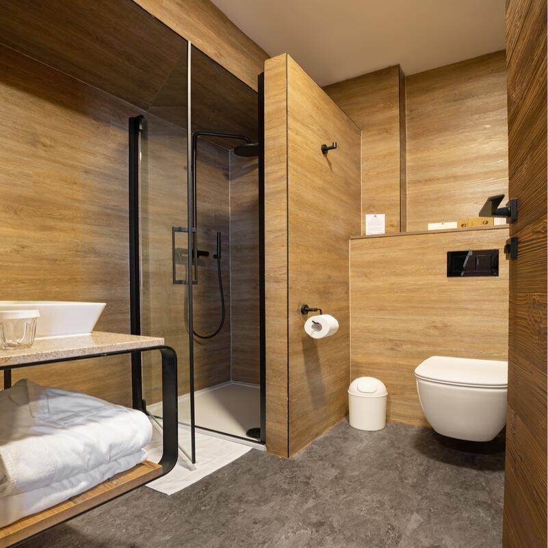 Treťou dodávanou bola dlažba so vzorom prírodného kameňa Golden Beige od Nowa Gala. Táto gresová, lesklá dlažba a obklad vám dodá posledné spojenie interiéru hotela s jeho exteriérom. Pri pohľade na severnú stranu hotela sa nad vami týčia majestátne Tatry a drevo lesov na nich ustupuje horským skalám, ktorý Golden Beige dokonale pripomína.