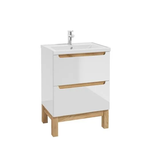 Skrinka SPACE SYSTEM 60x80x45cm pod umývadlo 2 zásuvky biela lesklá nôžky zlatý dub (demont) (106-D-06021)
