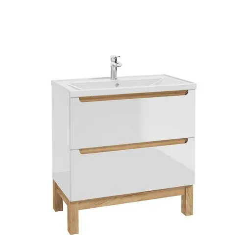 Skrinka SPACE SYSTEM 80x80x45cm pod umývadlo 2 zásuvky biela lesklá nôžky zlatý dub (demont) (106-D-08016)