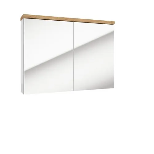 Zrkadlová skrinka SPACE SYSTEM 80x60x15cm 2 dvierka biela lesklá + dub zlatý (demont) (106-E-08003)